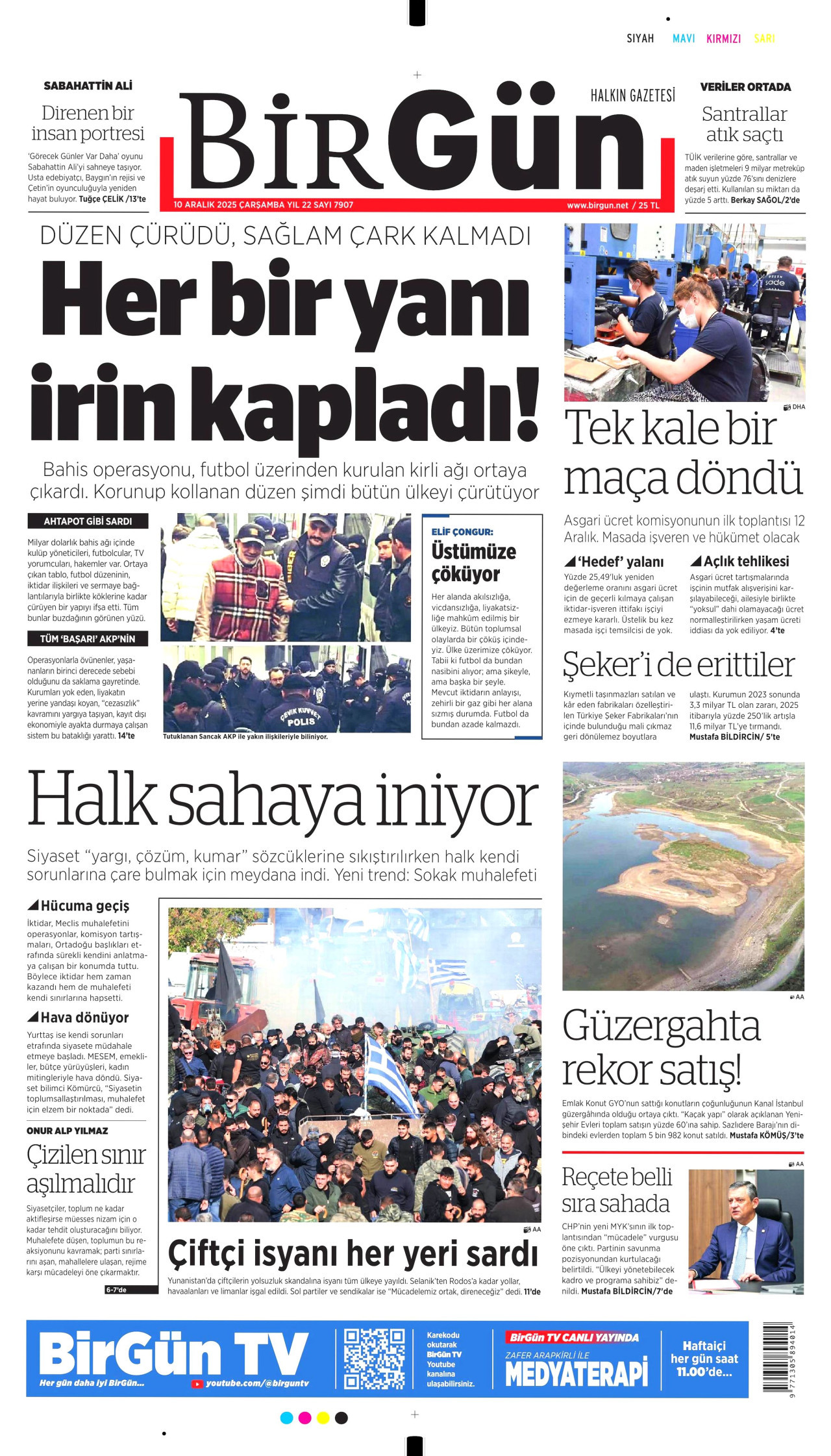 10 Aralık 2025, Çarşamba Günü Manşeti