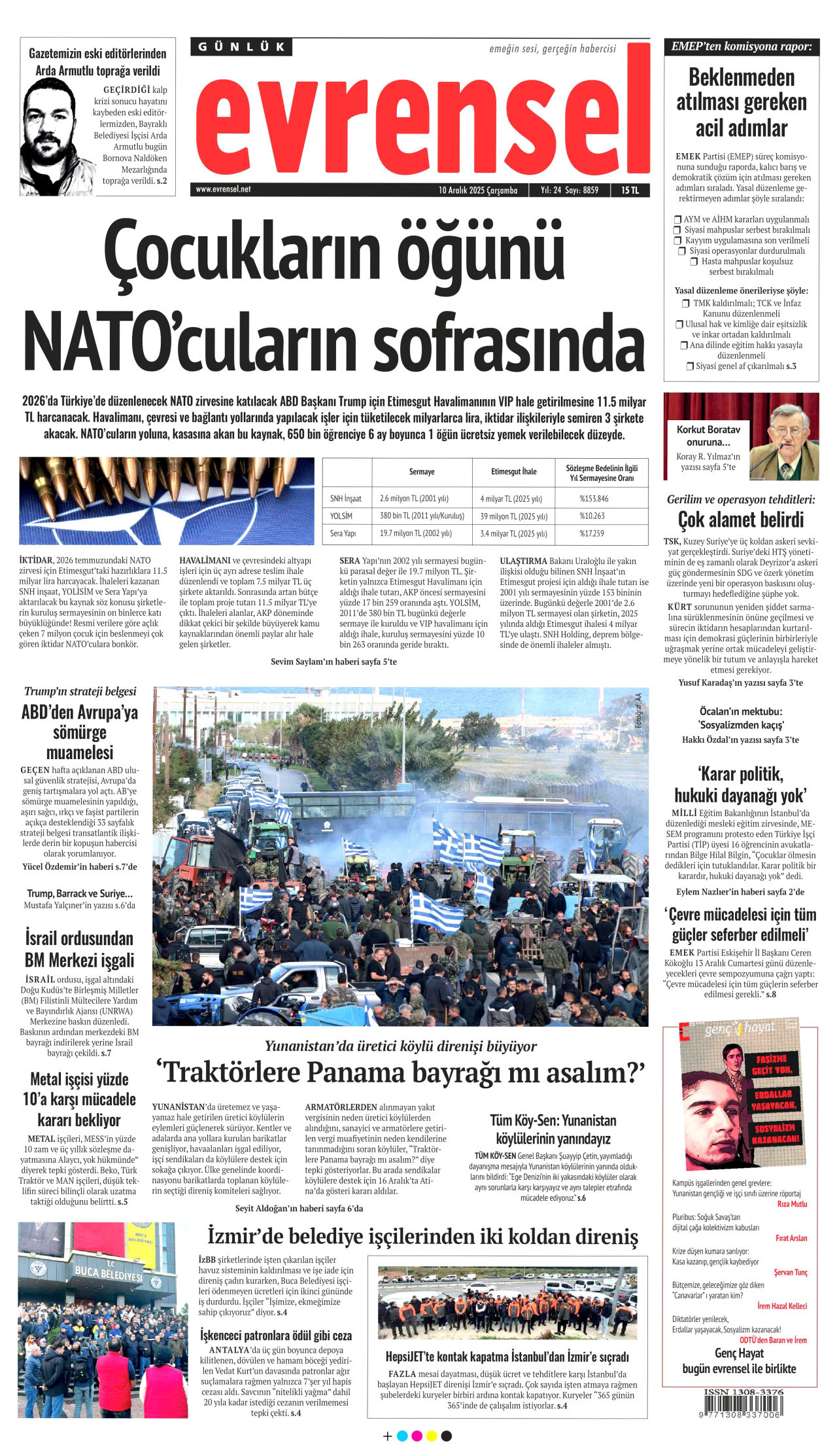 EVRENSEL Gazetesi 10 Aralık 2025, Çarşamba Günü Manşeti