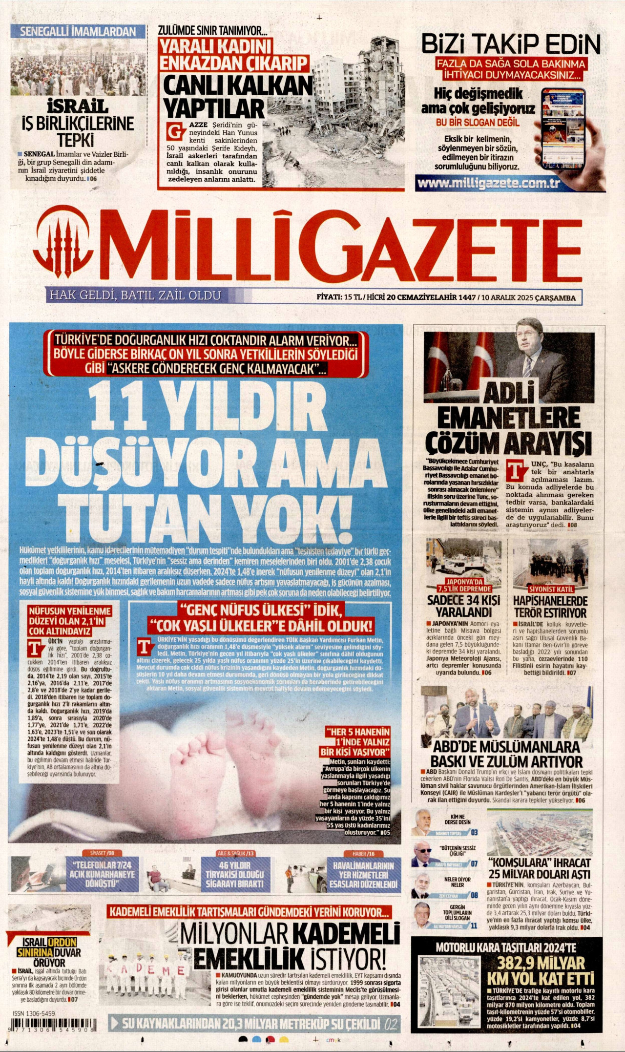 10 Aralık 2025, Çarşamba Günü Manşeti